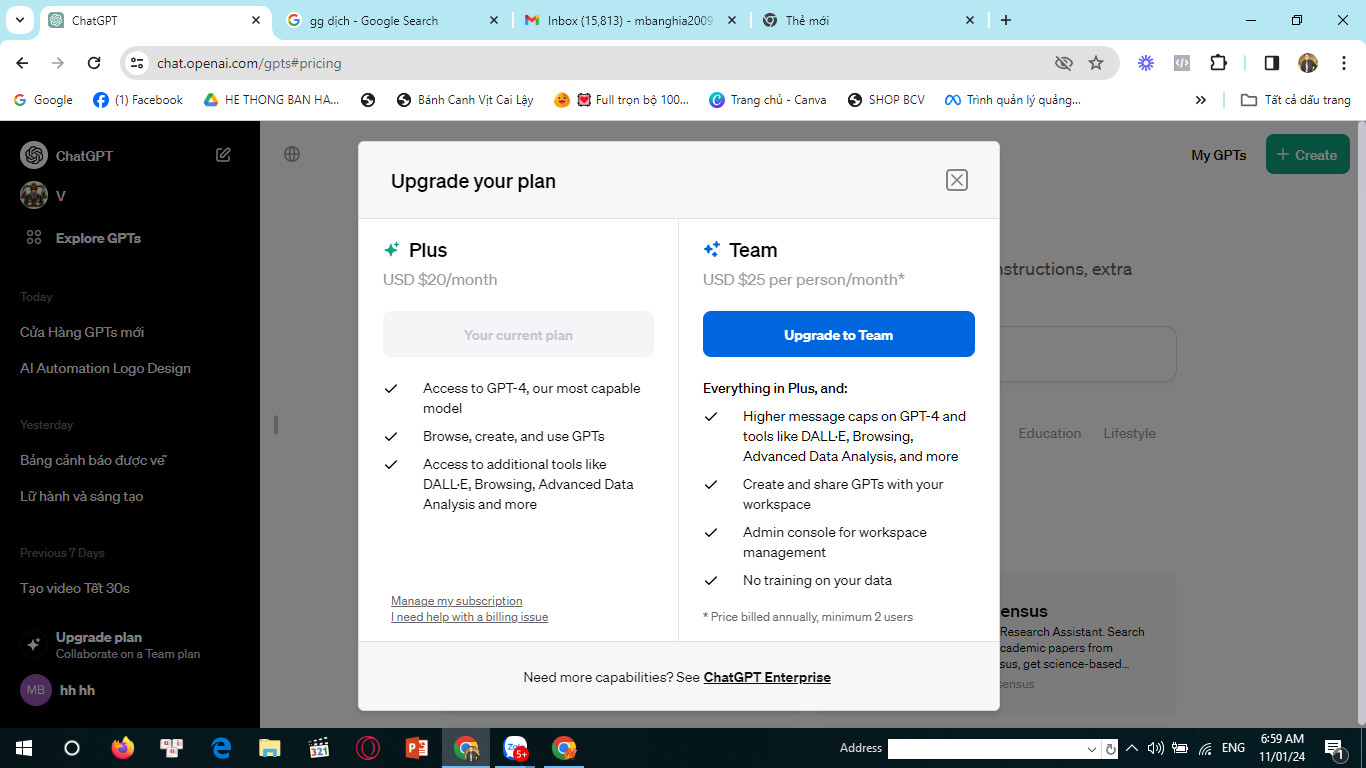 P/s: Ngoài ra còn có thêm 1 lựa chọn gói Teams 25 đô/ người / tháng, tối thiểu 2 người 1 team.