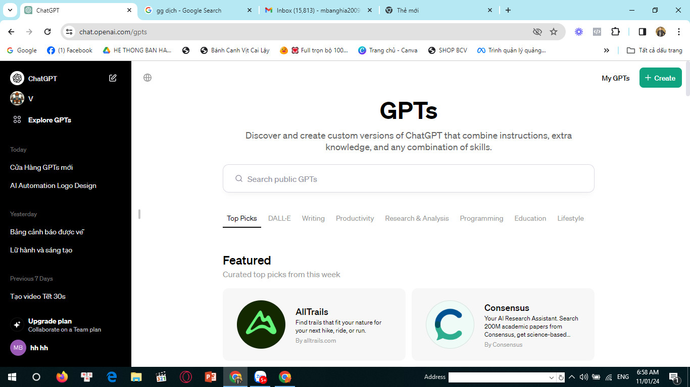Ngày 11/1/2023 OpenAI chính thức ra mắt cửa hàng GPTs (GPTs store)